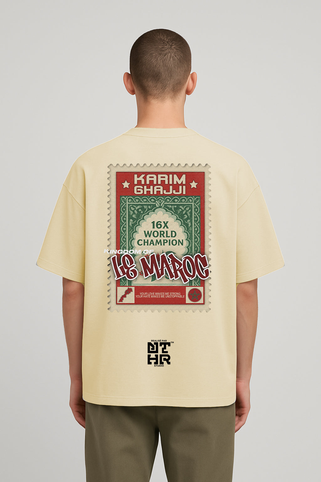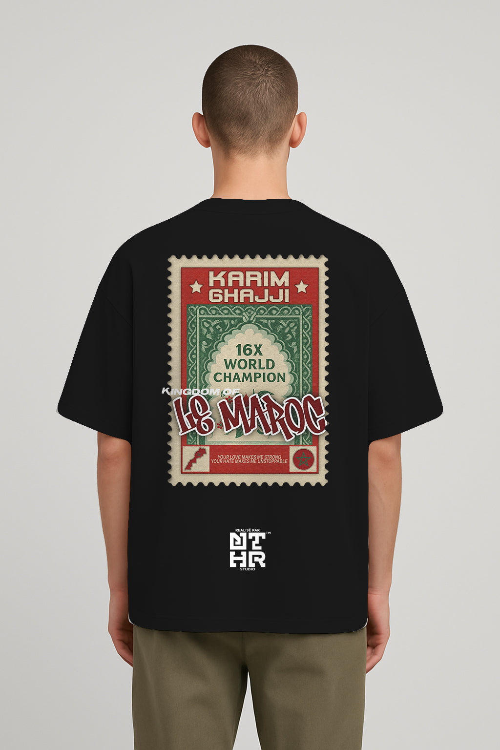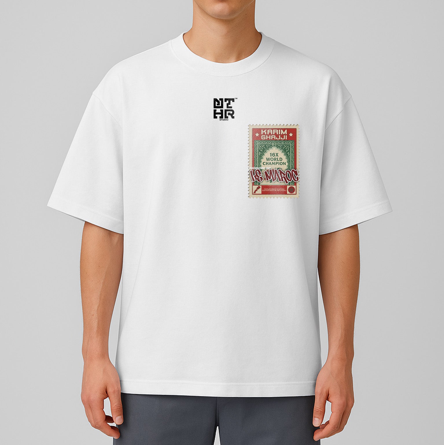 Un t-shirt pensé comme une pièce de collection, en hommage au parcours légendaire de Karim Ghajji et à ses racines marocaines.
