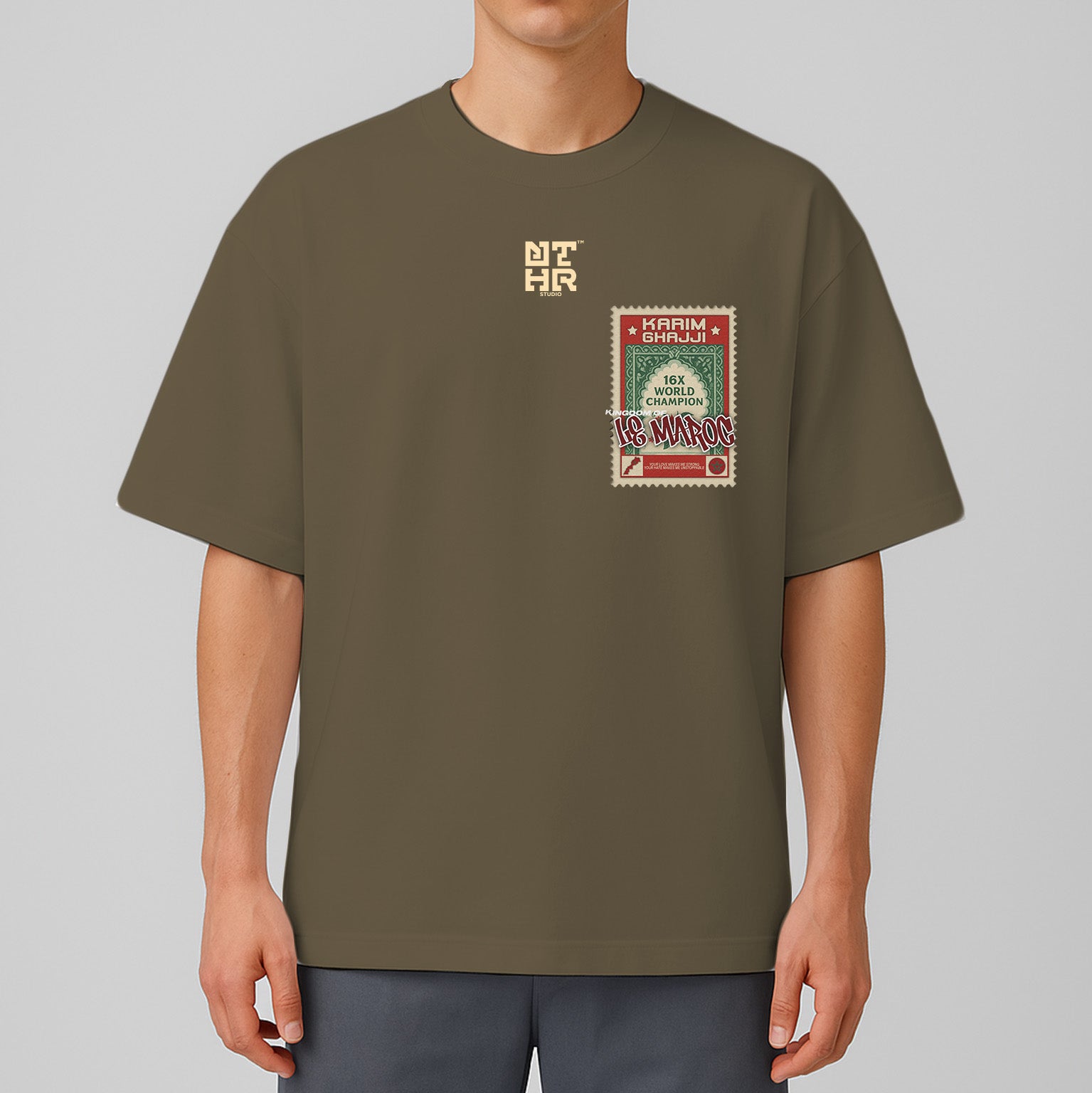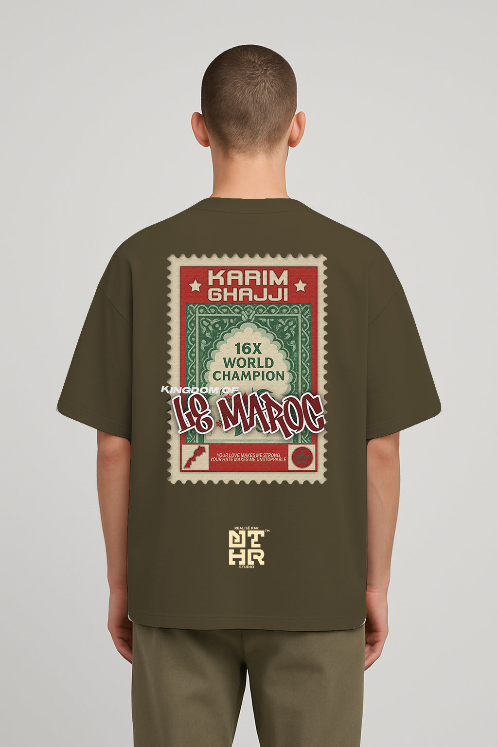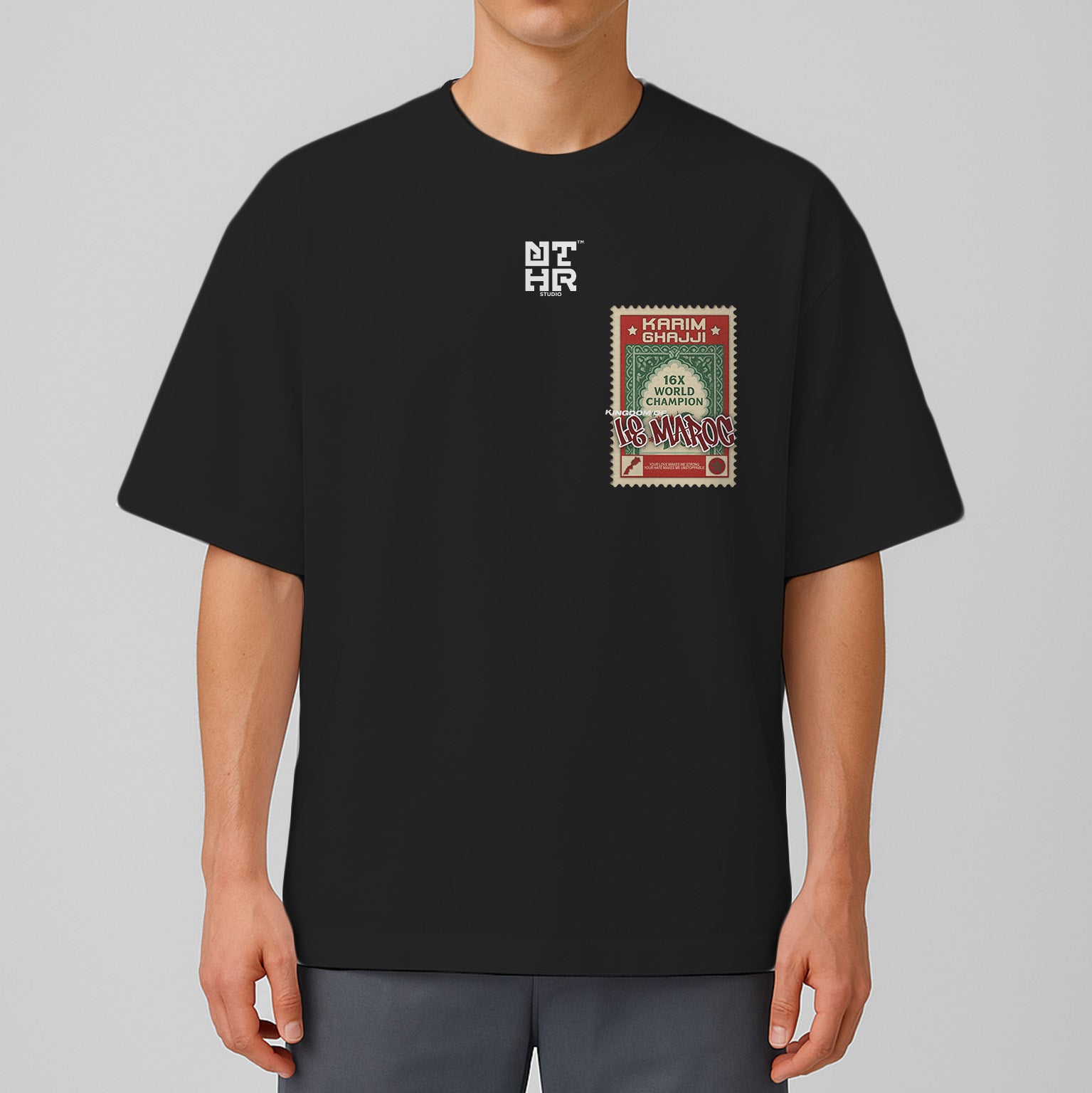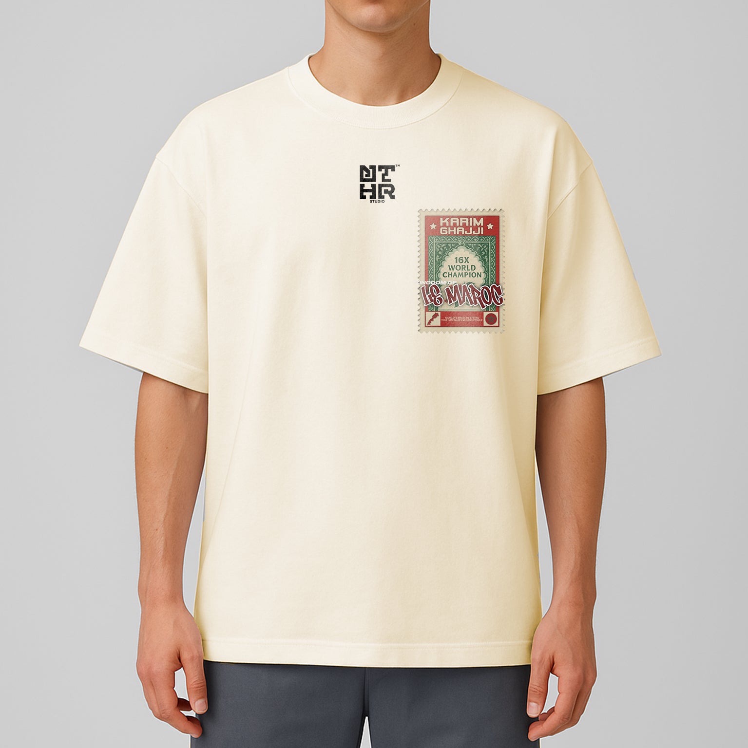 Un t-shirt pensé comme une pièce de collection, en hommage au parcours légendaire de Karim Ghajji et à ses racines marocaines.